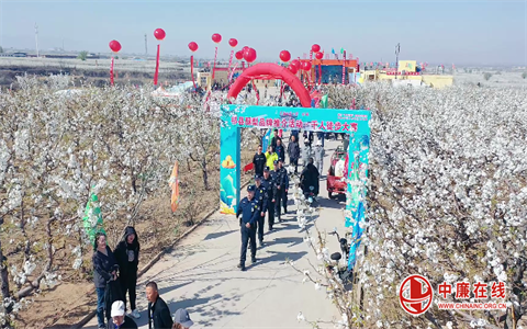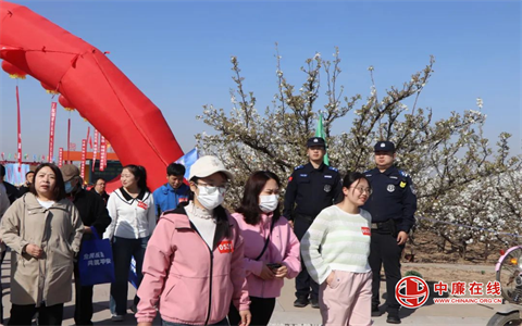 春染梨乡千山雪,警护平安万象新。4月10日,山西省晋中市祁县古县镇万亩梨园迎来一年一度的“梨花活动暨乡村文化市集”活动。祁县公安局民辅警在如雪的花海中筑起藏蓝防线,让群众在领略“千树万树梨花开”盛景的同时,感受触手可及的安全感。