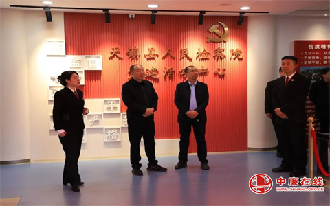 岳岐峰检察长一行先后实地参观了天镇县院党建阵地、12309检察服务中心、天之翼未检工作室、全过程人民民主办公室等,详细了解了各项工作开展情况,并提出指导意见。