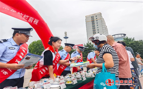 今天是第38个“6·26”国际禁毒日,为切实增强人民群众的识毒、防毒、拒毒意识,营造浓厚的禁毒宣传氛围,6月26日,山西省原平公安禁毒大队民辅警联合原平市社区戒毒(康复)服务中心在街心广场、商圈、小区、公园等人员密集和重点场所积极开展以“警惕药物滥用风险、点亮少年灿烂前程”为主题的禁毒宣传活动。副市长、局党委书记、局长郑锦绣与局党委委员、副局长王新田出席了此次活动。