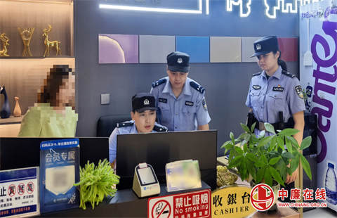 ▲市中分局将治安检查、反诈宣讲相结合,进一步提高辖区经营场所从业人员的反诈意识。