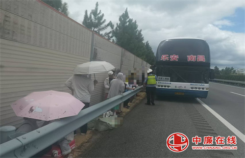 接警后,大队情指中心立即通知巡逻民警赶赴现场,巡逻民警到达现场后发现一辆乐安至南昌的公路客车停在应急车道内,车旁一群乘客在护栏旁边焦急等待,其中有七八名“小候鸟”。由于正值中午,天气炎热,有的乘客已经满头大汗。见此,民警在做好安全防护后,一边安抚乘客情绪,一边帮助司机联系转运车辆转运乘客。在民警的安抚下,乘客们积极配合民警工作,有序撤离至护栏外安全区域。随着转运车辆到来,民警组织乘客坐上转运车辆,转移下高速。