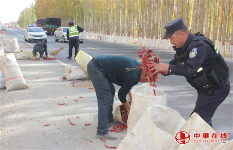 “真是太感谢你们了!这车辣椒是全家的指望,要是没有你们帮忙,我一个人不知道要弄到什么时候,这些辣椒要是坏了,损失可就大了!”10月27日,在新疆和硕县曲惠镇曲惠西街加油站前路段,货车司机艾师傅紧紧攥着民警的手,指节因用力而微微发白,声音里满是激动与感激,眼角还泛着未褪去的红。此时,原本散落一地的鲜红辣椒已全部重新装车,此前拥堵的路面也恢复了畅通 。
