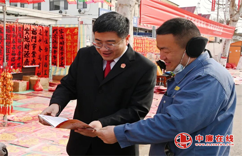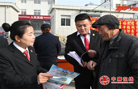 广播声未落,法庭干警已在集市摆起了“法治年货摊”。宣传桌上,防诈骗注意事项册、维权流程手册、安全风险提示、便民联系卡等材料一应俱全。“老板拖欠工资,面不见电话不接咋办?”“儿媳妇闹离婚,不让俺看孙子咋办?”……面对群众的咨询,朱训庆法官、法官助理和调解员一一耐心细致答疑解惑。