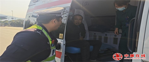 经民警现场询问该驾驶员因突发疾病,肚子疼痛难忍,民警立即驾驶警车开道赶往并和120救护车约好在金溪收费站汇合,在行驶途中驾驶员面色苍白,一直非常难受,民警一边不停安慰,一边拉响警笛,以最快速度将驾驶员护送至救护车上,让驾驶员得到及时救治。(胡力成)