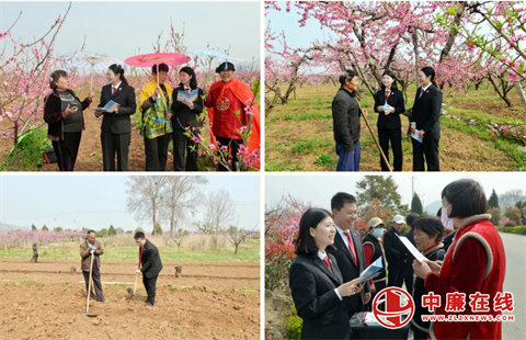 春风送暖,生机勃发,山亭区冯卯镇万亩桃花竞相绽放,游人如织。3月31日,山东省枣庄市山亭区法院干警走进桃园和田间,开展专题普法活动,为烂漫春光增添了一道法治风景。