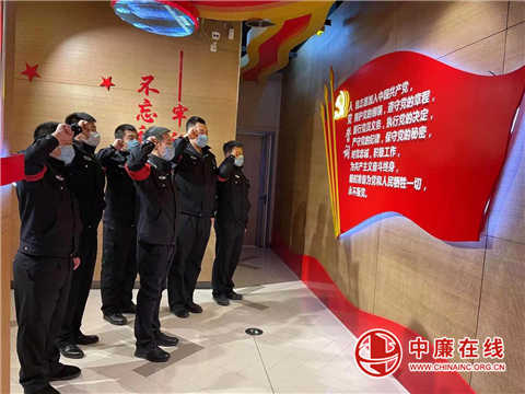 最后,参观民警面对党旗高举右手,重温入党誓词并纷纷承诺,将以昂扬的士气、进取的心态和创先争优的精神,不惧困难、奋勇拼搏,对党忠诚、服务人民。