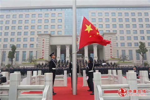 国歌嘹亮,国旗猎猎。上午8时许,全体人员列队完毕,警容严整、神情庄重、精神焕发。英姿飒爽的护旗手迈着矫健而整齐的步伐,护送国旗行进至升旗台。在雄壮激昂的国歌声中,鲜艳的五星红旗冉冉升起,全体民警庄严肃立、注目国旗,表达着对党和祖国的无限忠诚。