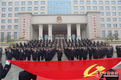 随后,全体人员在领誓员的带领下,面向党旗庄严宣誓,铿锵有力的誓言响彻全场。闪耀的警徽、鲜艳的国旗、响亮的誓言,辉映着忠诚与荣光,彰显着责任与担当,深情表达了周口公安坚决听党话、永远跟党走的的忠诚信念。