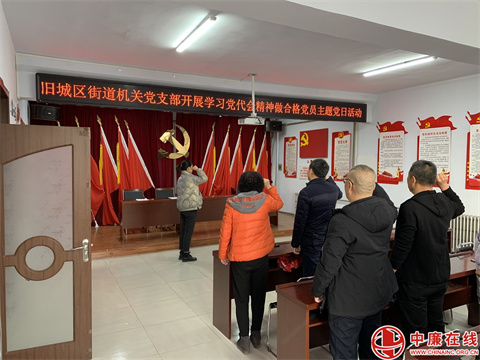旧城区街道机关党支部书记戴瑞香主持活动,组织委员秦艳慧讲党课。