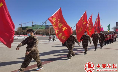 随后党员干部以及全体民兵列队出发,沿迎宾大街主干道向过往居民进行了文明祭祖,消防安全的宣传。靳书记通过面对面讲解的形式,生动地向群众普及了文明祭祖,防火安全的知识并发放了相关宣传资料。