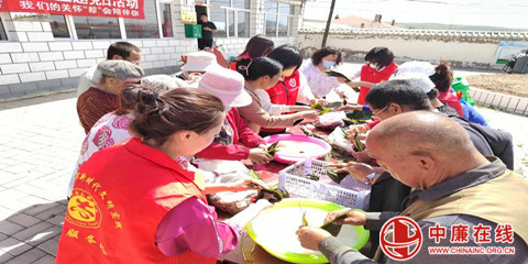 活动中,市政府办公室工作人员还带去粽叶、红枣等食材,与村民一起包粽子。现场每个人都纷纷参与其中,灵巧双手上下翻飞,形态各异粽子迅速成型,整个现场欢声笑语。随后,与村“两委”成员、驻村工作队员一同将包好的200余个粽子分发给村民,增添向上向善的社会风气,加强党员与群众对传统文化理解认识,进一步让村民坚定文化自信,切实增强群众的获得感、幸福感、安全感。