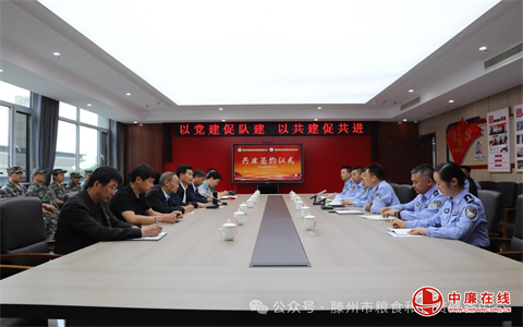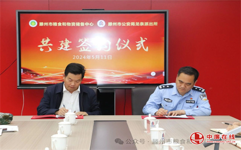 党建共建谋发展,战略合作拓新篇。5月11日,山东省滕州市粮食和物资储备中心与滕州市公安局龙泉派出所开展党建共建活动。市粮食和物资储备中心党组书记、主任、中心直属机关党委书记葛全振,中心党组成员、副主任高和平,中心党组成员、副主任王兵,市公安局龙泉派出所党支部书记、所长苏令操,市公安局龙泉派出所党支部副书记、指导员陈家田,市公安局龙泉派出所党支部支部委员、副所长韩荣华,市公安局龙泉派出所党支部支部委员、副所长王瑞,市公安局龙泉派出所党支部支部委员、副所长孙友忠,市公安局龙泉派出所党支部支部委员、副所长耿学美,市公安局龙泉派出所副所长吴开国及双方部门负责同志和党员代表参加活动。