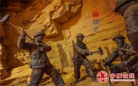 太行山石巍巍而立,红旗渠水长流不息。驻足红旗渠纪念馆,聆听讲解,我心中感慨万分。其中最令我动容的是一副名为《旱魃为虐》的塑像。雕塑背后讲述了儿媳妇王水娥因为不小心将接满的一担水洒了,羞愧难当竟在大年三十晚上上吊自尽的故事。这是当时水贵如油,林县人民惜之如命的缩影和体现。修建红旗渠,林县人民不仅用血汗和生命创造了造福于民的物质财富,而且还孕育形成了“自力更生、艰苦创业、团结协作、无私奉献”的红旗渠精神。