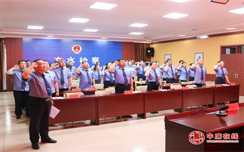 重温一次入党誓词。一面旗帜映初心,一颗红心永向党。院党组成员、主持日常工作的副检察长柳飞带领全体党员干警,高举右拳,共同重温入党誓词。铿锵的誓言、坚定的承诺,让每一名党员干警回溯精神的根脉,激发前行的动力。