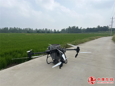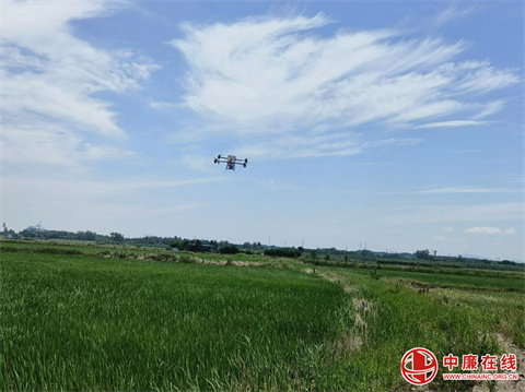伴随着阵阵螺旋桨的嗡鸣声,一架植保无人机依照设定好的轨道在稻田上空平稳匀速地飞行,机身下方喷出的水溶肥料,精确地洒落在水稻叶片上,为水稻送上“营养快餐”,力保增产丰收。
