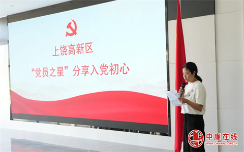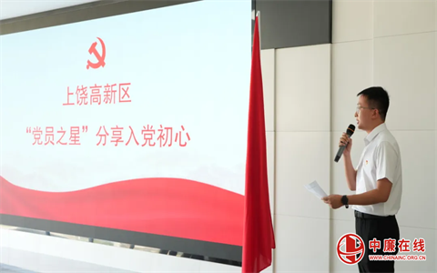 活动宣读了《关于表彰“党员之星”的决定》,高新区党工委全体班子为奋战在机关、非公企业党务和生产一线的“党员之星”颁奖。两位90后“党员之星”代表——廖超超和徐俊阳同志,分享了他们的入党的初心故事,讲述了如何在身边优秀党员的感召下,坚定信仰、申请入党;如何在平凡的岗位上,恪尽职守、勇挑重担,用实际行动诠释党员先锋模范作用。上饶高新区青年人才党支部党员徐俊阳表示:“党员之星是荣誉也是鞭策,党员身份时刻提醒我要主动靠前服务。作为年轻党员,我将深耕环保专业,磨砺过硬本领,迎难而上,勇啃硬骨!”