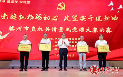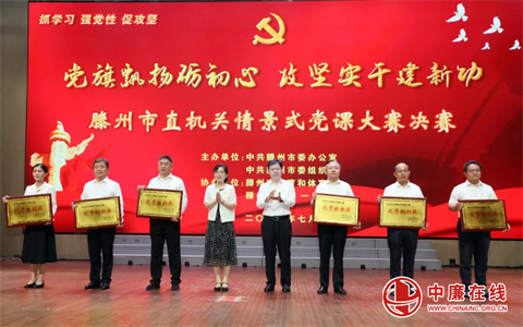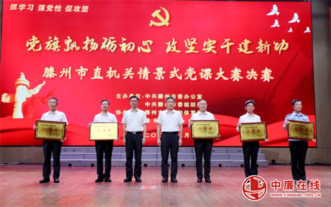 7月23日,山东省滕州市委办公室、市委组织部联合举办“党旗飘扬砺初心 攻坚实干建新功”滕州市直机关情景式党课大赛决赛。枣庄市委常委、滕州市委书记王广部,市委副书记、统战部部长程亮,以及市领导孔祥东、常涛、颜丙磊、张晓翠出席活动并为获奖选手颁奖。