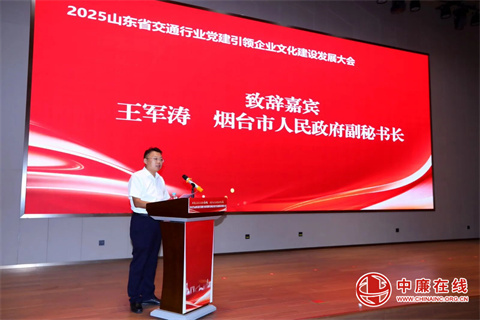 王军涛代表烟台市政府致辞,他表示,近年来烟台市委、市政府高度重视交通事业发展,充分发挥党建引领作用,推动党建工作与交通业务深度融合,全力打造融合胶东经济圈、对接京津冀、连通长三角、面向东北亚的国际性综合交通枢纽城市,构建起了由港口、航空、铁路、公路组成的现代化综合立体交通运输基础设施体系。王军涛指出,本次大会充分体现了全省交通人的宽广视野和格局,彰显出我省交通企业党建、企业文化发展的深厚底蕴和美好前景。大会对全省各交通企业来说是一个新的契机,必将充分展示党建优秀成果和企业文化品牌,促进交通企业高质量发展。对烟台市来说,是一次难得的机遇,必将推动烟台市交通运输事业发展再上新台阶,为全省交通运输事业高质量发展贡献更多烟台力量。