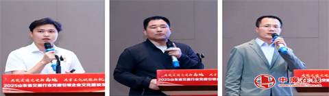 国铁济南局文联副秘书长李进,山东省港口集团党委宣传部(企业文化部)副部长张国平,山东机场管理集团烟台国际机场有限公司党委委委员、副总经理王晓楠,山东高速交通建设集团工会副主席林琳,济南公共交通集团党群工作部部长崔芳芳,山东省滨州交运集团党委书记胡义亭,山东轨道交通工程咨询有限公司党总支委员、副总经理逄永强等7位来自交通行业不同领域的代表,分别以《党建引领聚合力 文化铸魂启新程》《秉持五个特性 建设文化强港》《党建领航 振翅高飞 以高质量党建引领机场高质量发展》《锚定党建引领 厚植企业文化 推动高质量发展》《济南公交“四善”文化的品牌塑造与实践解析》《党建与企业文化融合创新 全力打造道路运输高质量发展新引擎》《以“四抓”聚“四力” 深化党建品牌建设》为题,分享了各自的成功经验和典型做法。