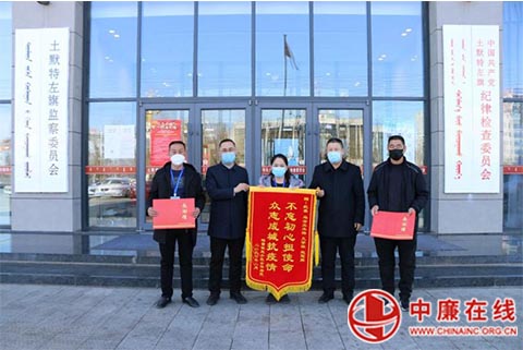 中廉在线3月9日讯:“多亏有你们在卡点没日没夜的尽忠职守,关键时候挺身而出,保护大家的安危,我们才能安心宅在家,远离病毒。”2月26日,察素齐镇怡景佳苑业主委员会代表小区业主将一面锦旗和一封感谢信送到土左旗纪委监委,为土左旗纪委监委下派干部乌云其木格、亢学栋、赵冠男三位同志的“尽职担当”点赞,向纪检监察干部致敬。