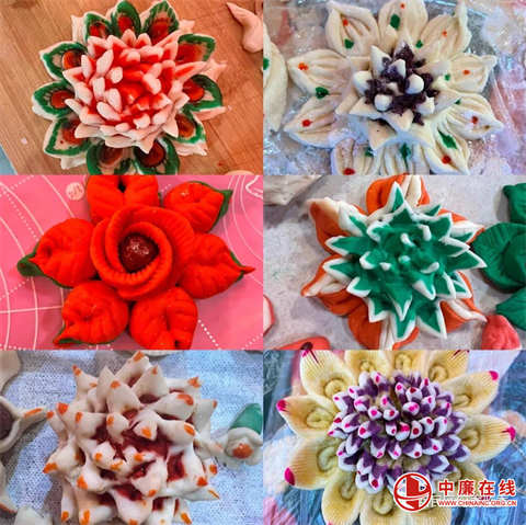 二是花馍齐绽放、莲花寓清风。17支代表队巧手捏花馍,即兴而作,生动活泼,妙趣横生。通过切、揉、捏、揪、挑、压、搓、拨、按等方式,一朵朵象征着“清廉”的莲花齐齐绽放。一件件精美的花馍作品把清廉理念融入到艺术创作中,主题明确、创意新颖,让人在欣赏花馍艺术之美的同时,也受到了清廉文化的熏陶。以花馍为媒传播清廉文化和家风家训文化,唱响反腐倡廉主旋律。