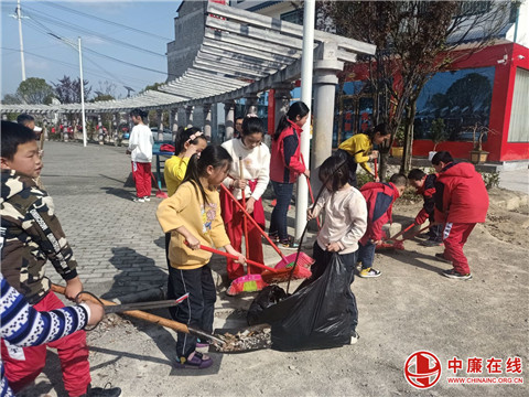 还有的少先队们正在做清洁小卫士,美化我们的乡村,提倡“弯腰”行动,杜绝白色垃圾,让我们的乡村越加的美丽,给春意盎然的三月更增几分姿色。
