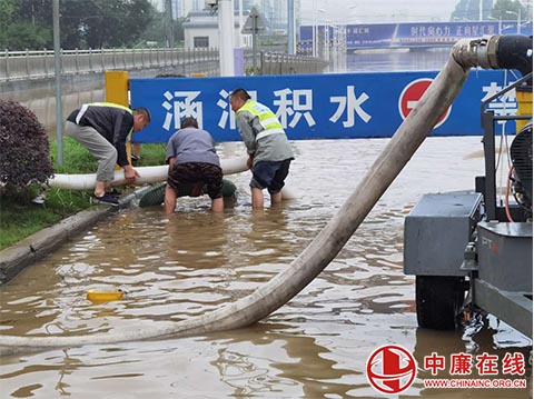 该市市政管理处提前部署,在暴雨来临之前,“一点一策”补短板,竭尽全力应对。针对市区重要道路积水情况,组织相关技术人员,现场再勘察,制定专项方案,针对襄城四季青路管网通畅,但末端泵站还不具备抽排功能的特点,自26日白天抢抓晴朗天气,迅速集结一支队伍,架设自吸泵3台,龙吸水1台,对管网存水进行抽排,腾空管道,对内环南线下穿涵洞泵站出水口管网进行清淤,尽可能减少涵洞进水;对市区23座泵站泵机、闸门、排放口进行再检查,确保设备设施运转正常;所有突击队员放弃端午小长假,提前根据预案要求到岗。