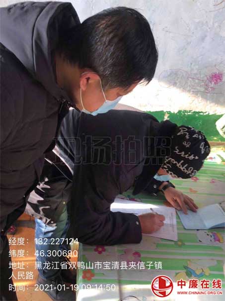 中廉在线1月20日讯:1月19日,黑龙江省宝清县夹信子镇16个行政村迅速开展抵返宝人员全覆盖大排查,逐户填写告知书、注册市民码工作。