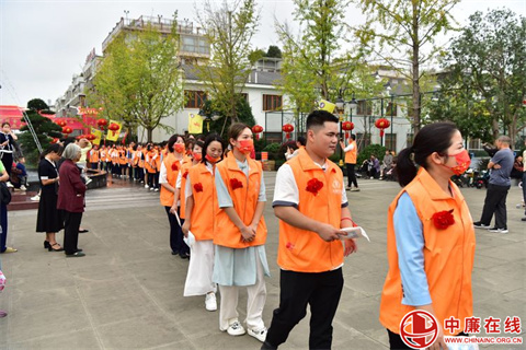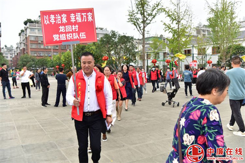 和着动听的音乐,“以孝治家”龙回村党组织、“以孝治家”龙回村义工队伍、“以孝治家”慈善企业家队伍、“以孝治家”龙回实验小学队伍等13支队伍,精神饱满地走进龙回村文化礼堂。