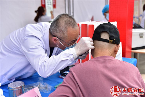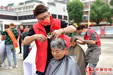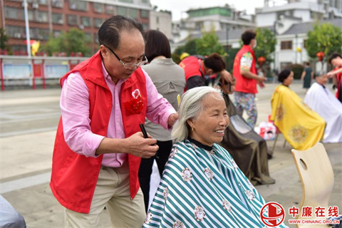 伴随着孝心洗脚,场外还有健康义诊和爱心理发活动。