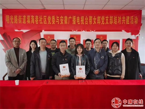 近日,安徽经视采访中心主任、“帮女郎”栏目制片人顾强携“帮女郎”党支部一行赴瑶海区明光路街道填海巷社区开展“结对共建”活动,区委宣传部常务副部长解琛、明光路街道党工委副书记何虎、社区相关负责人陪同。