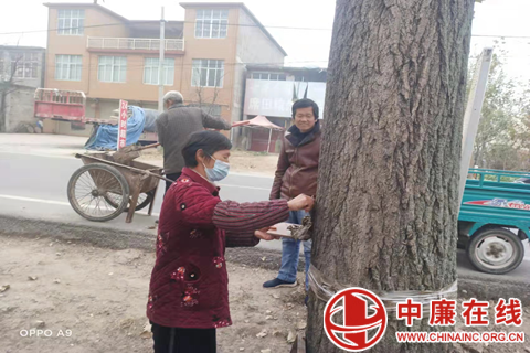 县林业部门技术人员要求,把土、麦糠和成泥巴,土与麦糠的比例3:1,泥巴和到能团成团的程度,在树干80cm高处(以方便操作的位置为宜),用泥巴把树干裂缝抹平,且形成一圈突出树皮0.5-1cm的泥环,然后用宽度8-10cm、表面光滑的白色透明胶带(县林业局提供),错开(重叠部分2cm左右)缠绕两圈的标准操作,截止目前全县完成约36万棵。各乡镇要认真做好树木病虫害防治、行道树的缺株断档情况的排摸,连片造林规划等工作,为春季造林做好准备。