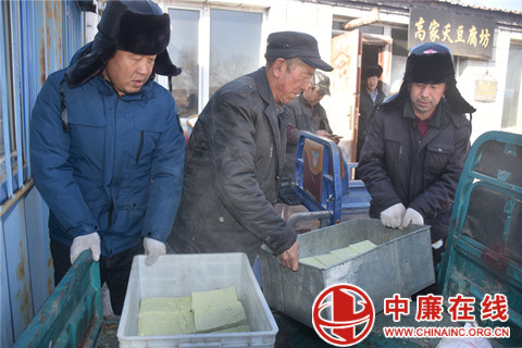冬日里的蛮汉山,白雪皑皑,银装素裹,天寒地冻,与之形成鲜明对比的是凉城县蛮汉镇高家夭村豆腐却是加工坊间里热火朝天的加工场面。