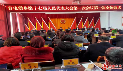 第一次全体会议上,市人大常委会副主任王建英、市政协副主席赵团义,市人民代表大会换届选举工作第六督导组副组长宋利民以及两位成员出席指导工作。随着大会执行主席谷茂宣布官屯堡乡第十七届人民代表大会第一次会议开幕,参会人员全体起立奏唱了《中华人民共和国国歌》。