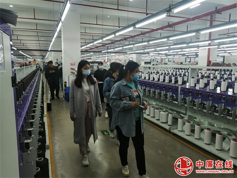 活动现场,体验人员深入健盛、鼎盛企业的工作车间,参观生产设备及工作环境,并在技术人员的指导下纷纷上手操作。同时,讲解员热情的介绍了公司各岗位的用工需求、薪资待遇以及发展前景。