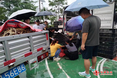 7月18日一大早,虽然大雨瓢盆,却有大量村民陆续赶来,村里面已经提前几天在村小组群做好了通知,文笔街道将会在今天给村民发放免费的鸭苗和饲料,有意愿的村民可以前来领取。