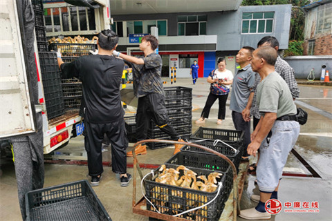 发放现场,村民们提着鸭笼、纸箱、箩筐赶来领取鸭苗,大家在有序排队的同时和工作人员默契配合,清点、分发、登记,让每一个到场的村民都领到了满意的鸭苗。