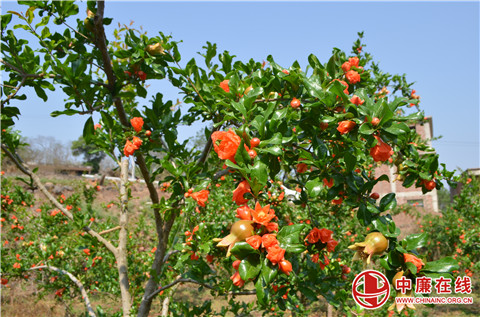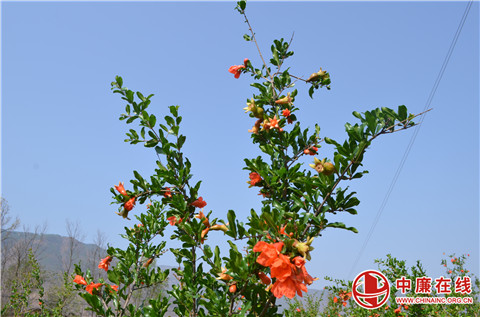 当下,正是石榴花开的季节。在云南省昭通市巧家县炉房乡鸡噜村的1500亩石榴种植基地里,一朵朵石榴花竞相绽放,在层层叠叠绿叶的点缀下,有的含苞欲放、有的破蕾初绽、有的花团锦簇、有的石榴初成,石榴花用一抹如火焰般的红艳,点缀浓浓春意,呈现出一派生机勃勃的景象,繁茂又烂漫,生动而活泼。鲜红的石榴花衬着嫩绿的叶子,一个个石榴挂满枝头,预示着今年将是一个丰收年。村民们穿梭在石榴林里除草、剪枝、梳花,一派繁忙景象。
