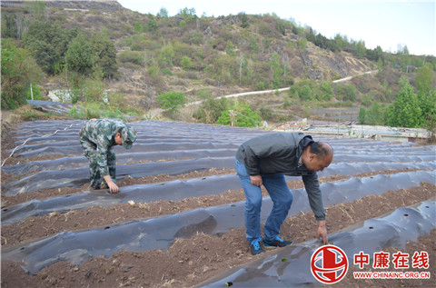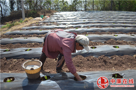 “烤烟移栽主要分为四步,首先要覆膜,覆膜之后要打孔,打孔后才能移栽烟苗,然后将泥土覆盖在烟苗的根部,最后再浇定根水。打孔的深度要适中,保证为烟苗生长提高适合的温度、湿度,这样烟苗的成活率高。”底里村水塘社烟农朱玉昌一边种植烟苗一边高兴地说。