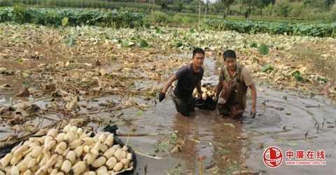 在美丽的荷塘里,呈现另外一幅丰收的景象,夏藕已经成熟,在一人多高藕杆的田里,一张张荷叶撑开像一把把遮阴伞,一台台挖藕机器隆隆.地轰鸣,工人们正忙碌着高压水枪挖莲藕,一条条莲藕像变戏法一样,从泥中冒出水面。半天的功夫,在塑料做成的小船上,莲藕堆成了小山,高压水枪喷出的水柱将莲藕冲洗得白白胖胖的,田埂上,一股股莲藕的清香扑鼻,“咔嚓”清脆莲藕断裂分拣声音,长长的雪白的藕丝相连,绘成了一幅幅“藕断丝连”的美图。工人们正忙着将“白大胖”的莲藕一筐筐分类装好、过称、装车运往北京等地。