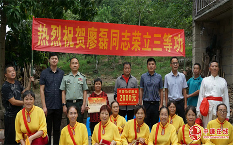 为弘扬新时代拥军优属光荣传统,增强军人及其家属的荣誉感和自豪感。近日,四川省内江市东兴区人武部、区退役军人事务局组成慰问组前往富溪镇来凤村为荣立三等功的现役军人廖磊教书送立功喜报和慰问金。