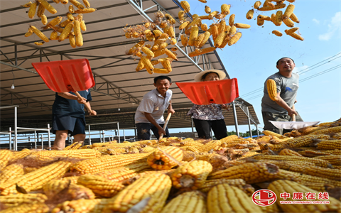 8月16日,四川省内江市东兴区双桥镇凤龙村,种粮大户周英勇与当地村民在玉米大豆复种产业园忙着收获、脱粒、晾晒玉米,力争颗粒归仓。