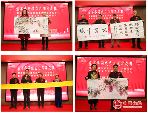 到场的书画家嘉宾朋友为意不尽网成立8周年庆典活动进行了艺术作品捐赠以表祝贺。著名作家孙见喜、著名经济学家张宝通、西部新闻网总编张龙等友人也送去了视频祝福。