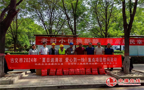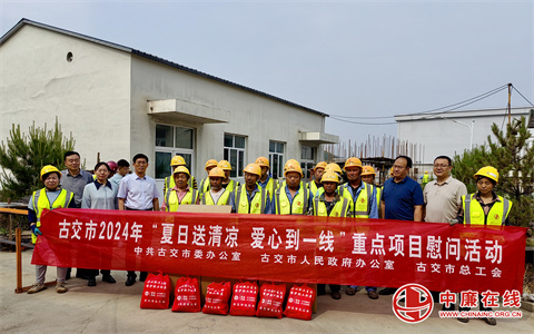 5月24日,山西太原古交市委办公室、市政府办公室及市总工会相关负责人等组成慰问组深入全市部分重点工程项目施工现场,开展“夏日送清凉 爱心到一线”慰问活动,把党和政府以及工会组织的关心与关爱送到职工身边,助力和推动重点工程建设。