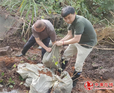 7月2日17点25分,巡查人员发现他负责的防守段旧涵管处发生较大渗漏,他立即组织人员调运土方,带着队员一起扛土包,搭围堰,不到半个小时便完成险情处置。经专家后续抵达现场察看,处置及时、得当!回过头再看他时,已是满身泥垢!他的这种吃苦在前的精神,不断影响着年轻干部,激发更多的抗洪热情!
