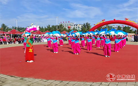 精彩的文艺汇演在威风锣鼓队的表演中拉开了序幕。激昂的鼓点,气势磅礴、大气恢宏,瞬间点燃了现场的气氛。腰鼓表演《山里人乐的好潇洒》的闪亮登场,让现场掌声雷动、气氛热烈。腰鼓队员们腰间的红绸带随风飘舞,如同一团团燃烧的火焰,象征着农民朋友们红红火火的生活。旗袍走秀《蝶舞清风》为观众带来了一场优雅的视觉盛宴,身着旗袍的女士们,举手投足间散发着古典的韵味和东方女性的魅力,展现了新时代农民的精神风貌和文化自信。舞蹈《欢欢喜喜庆丰收》、《祖国颂》、《舞动周庄》、《山丹丹开满了黄土坡》等节目依次上演,形式多样、内容丰富,传承和弘扬了地方文化特色,也展现了农村的新变化和新风貌,表达了农民对美好生活的向往和追求。