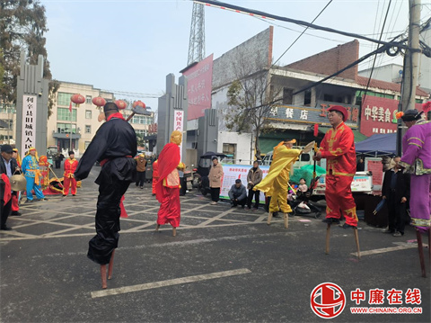 为了让移风易俗的理念更加深入人心,活动现场还设置了文艺表演环节。演员们表演了踩高跷、舞龙等技艺,吸引了大量观众驻足观看,演员们精彩的表演赢得了观众们阵阵热烈的掌声和欢呼声,现场气氛十分活跃。