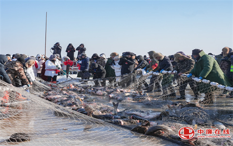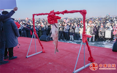开幕式上,通过“迎风旗”“震天鼓”“祈福词”“出征酒”等篇章,近百名表演者生动再现了传统古老的肃慎渔猎文明,为现场观众带来了一场视觉与文化的双重盛宴。随着雄浑的“拉网号子”响起,冬捕节正式拉开帷幕。渔民们在冰面上熟练地拉网,大白鱼、花鲢、鲤鱼各种肥美的鱼类随网而出,展现了“冰湖腾鱼”的壮观景象。