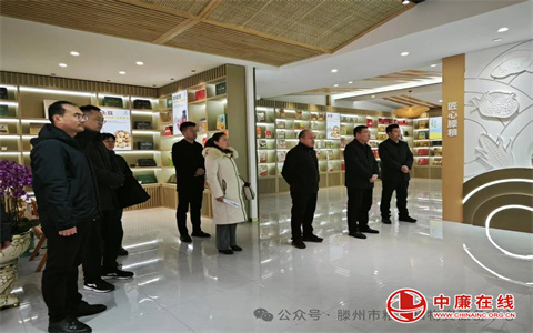 调研组一行首先来到位于书院街历史文化街区的“滕粮善品”品牌体验馆,实地考察品牌文化建设情况。在体验馆内,调研组参观了“天成滕粮”“地蕴华章”“匠心传承”“善品无疆”等主题展区,通过墨子文化与现代科技融合的展陈设计,深入了解了滕州市粮食产业的历史脉络及品牌IP形象“滕小麦”“善小果”的丰富内涵。