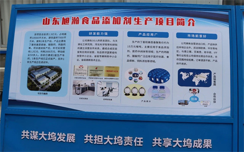 山东旭瀚食品添加剂生产项目总投资1.3亿元,占地面积10000平方米,建筑面积7000平方米,建有2条生产线,产品主要有丁基羟基茴香醚、醋酸钙、丙酸钙等,项目建成投产后,年可实现营收1.2亿元、利税2000万元,带动就业50余人。目前已建成2座生产车间,1条生产线已正式投产,另外1条生产线正在调试中。